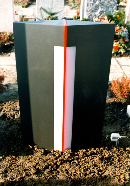 Grabstein Grosseltern 1995 Ansicht von hinten Stahl, Plexiglas, Eisenglimmerfarbe 80 x 50 x 13 cm