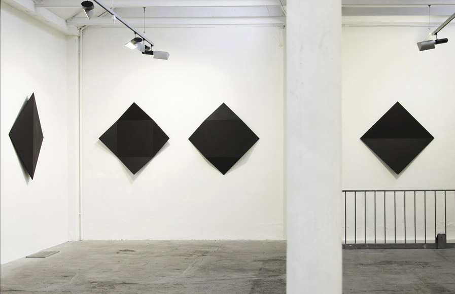 Einblick in die Ausstellung M54, Regionale 14 Grosses schwarzes Quadrat 1-3 2013 Schwarzes Mdf, Leinöl je 1.4 m x 1.4 m x 10 mm