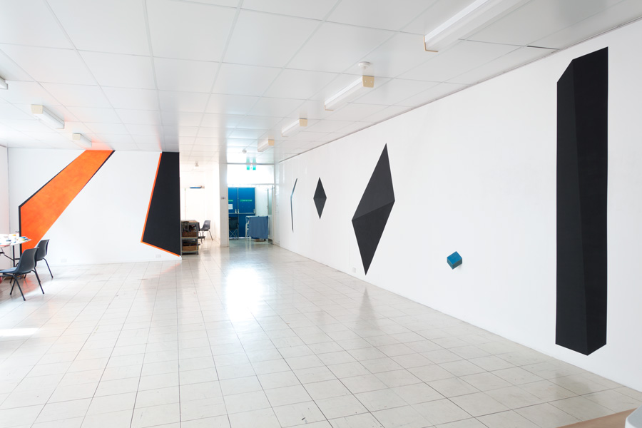 Acryl auf Wand, Blauer Kubus Mdf